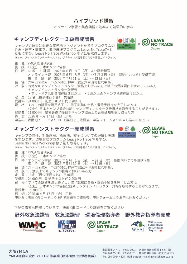 キャンプインストラクター養成講習会情報