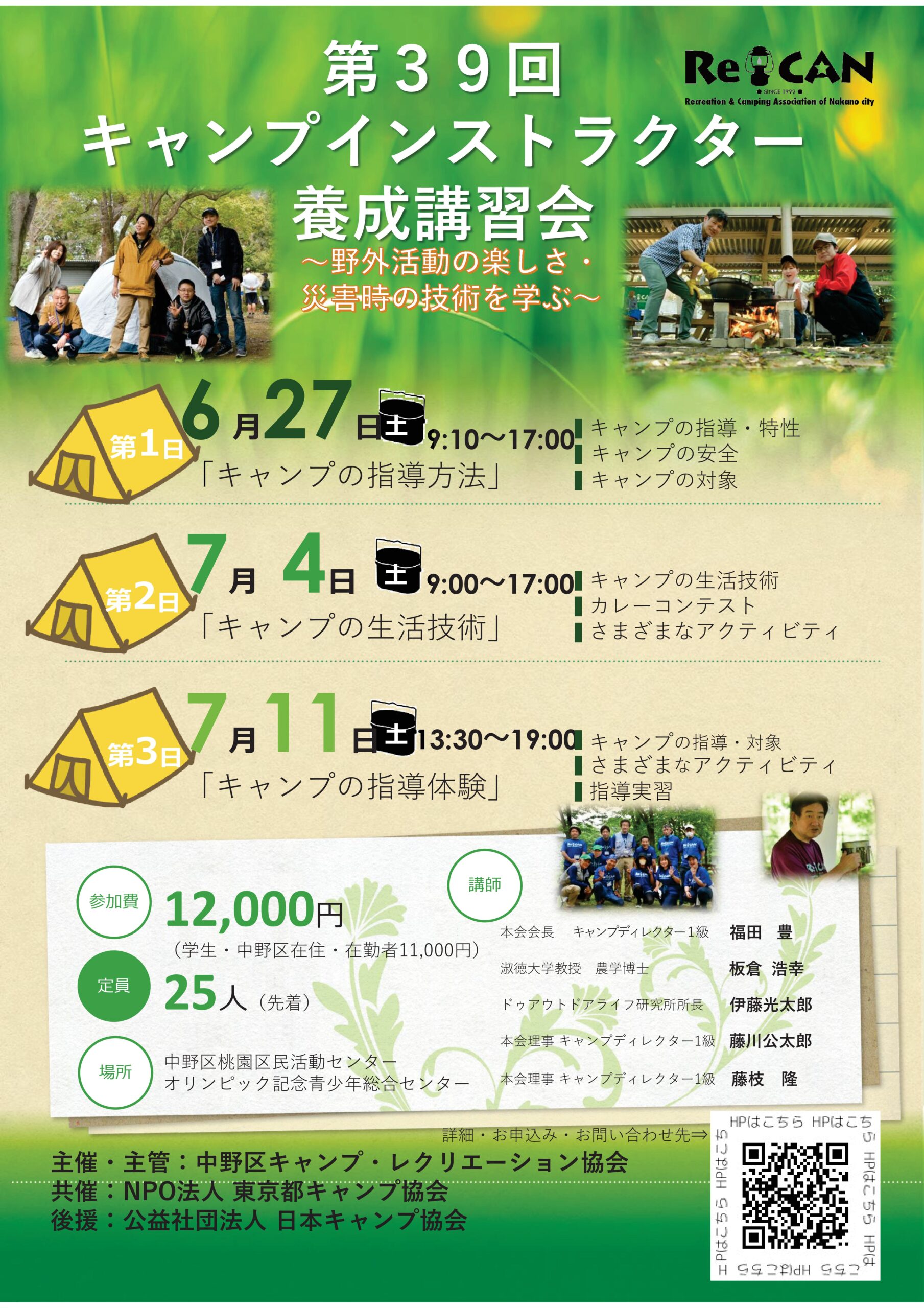 東京:キャンプインストラクター養成講習会(6/27・7/4・7/11)