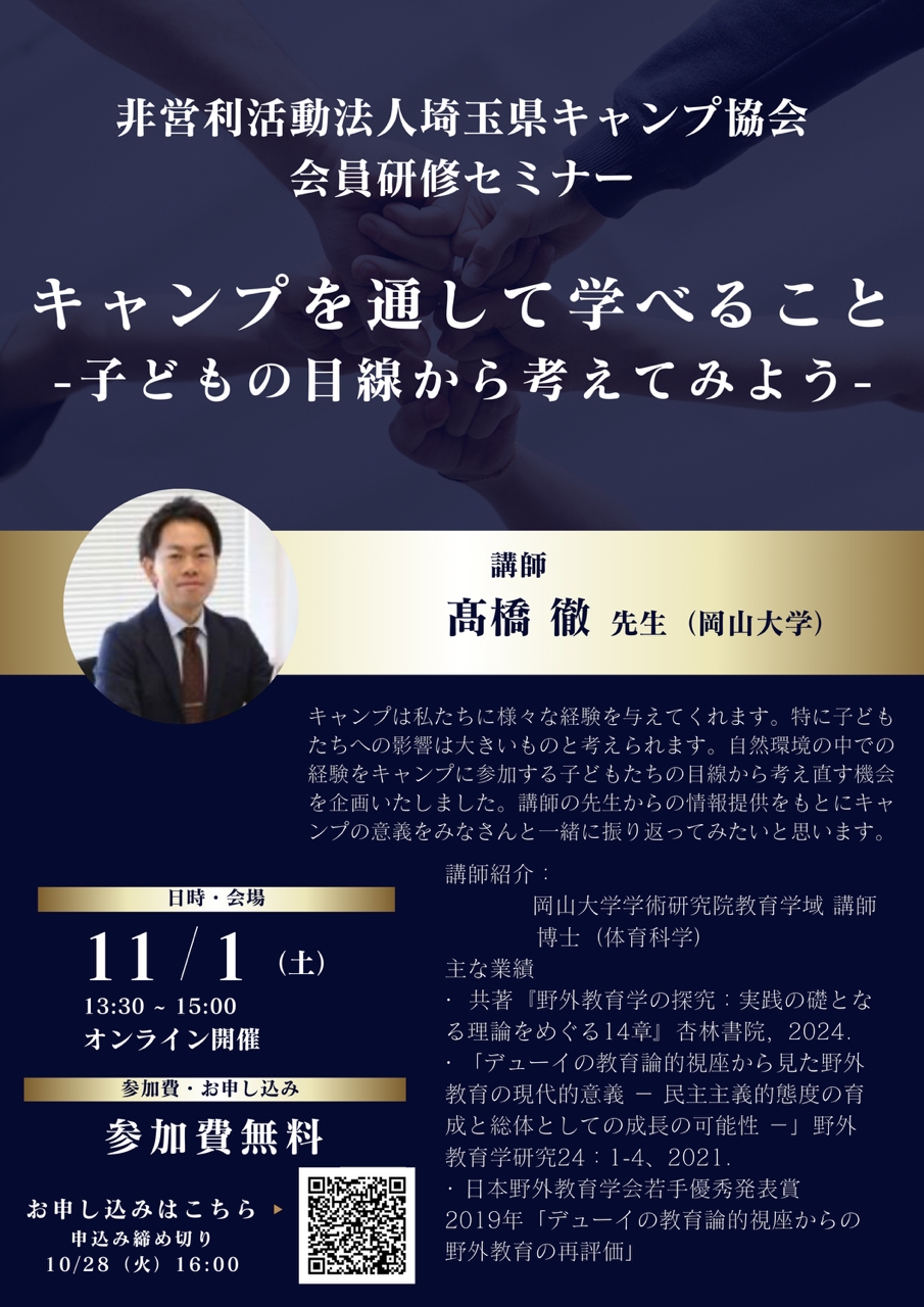 埼玉県キャンプ協会が、オンラインセミナーを開催します。