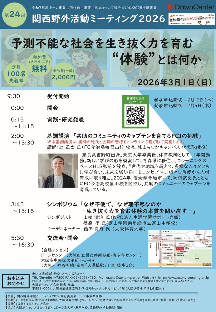 2026年02月06日(金)トピックス関西野外活動ミーティング2026実行委員会・ドーン事業共同体より、イベントのご案内が届きましたので、ご紹介させていただきます。